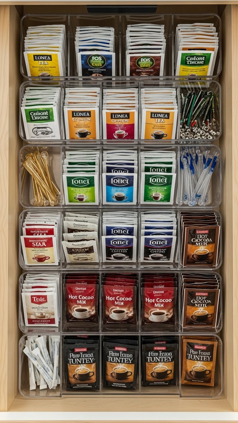 Your beverage drawer becomes a functional display that actually encourages you to use the nice tea you keep forgetting about.