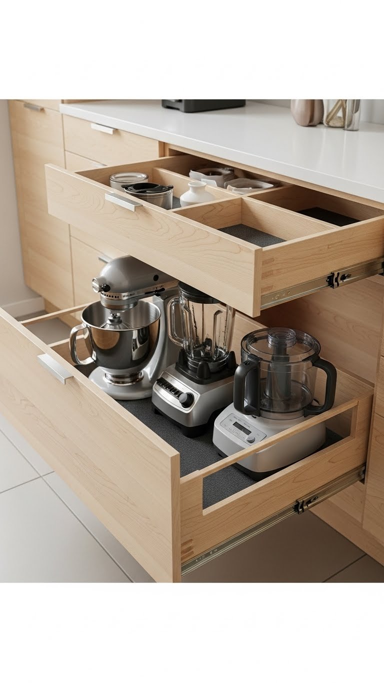 If you store heavy appliances in a deep drawer, full-extension slides mean you can access items in the back without pulling everything forward.