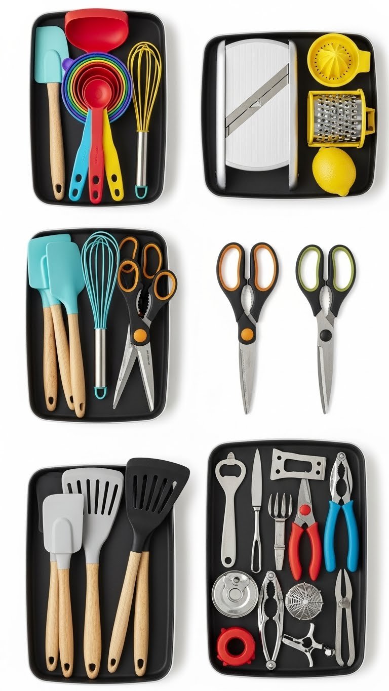 Fill divided containers ($12–$25 from Oxo, OXO, or Target) with items grouped by cooking task: one for baking, one for pasta prep, one for grilling, etc. When you’re ready to cook, grab the whole container instead of hunting through your drawer. This system is especially helpful for anyone who cooks regularly or batch-preps meals.