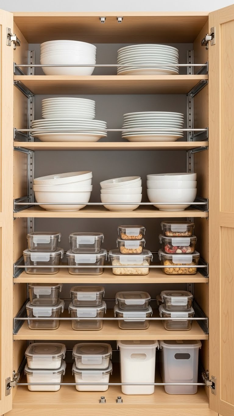 Install full-extension drawer slides ($30–$60 per pair from Home Depot, Lowe’s, or online). This is one of the few organization ideas that requires actual installation, but it’s absolutely worth it if you regularly store heavy items. Slides mean the drawer glides smoothly and you can see and grab anything in the drawer without strain.