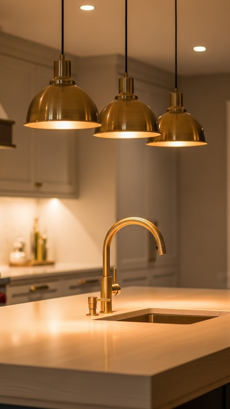 Balance metallics with neutrals so the room doesn’t feel overdone.