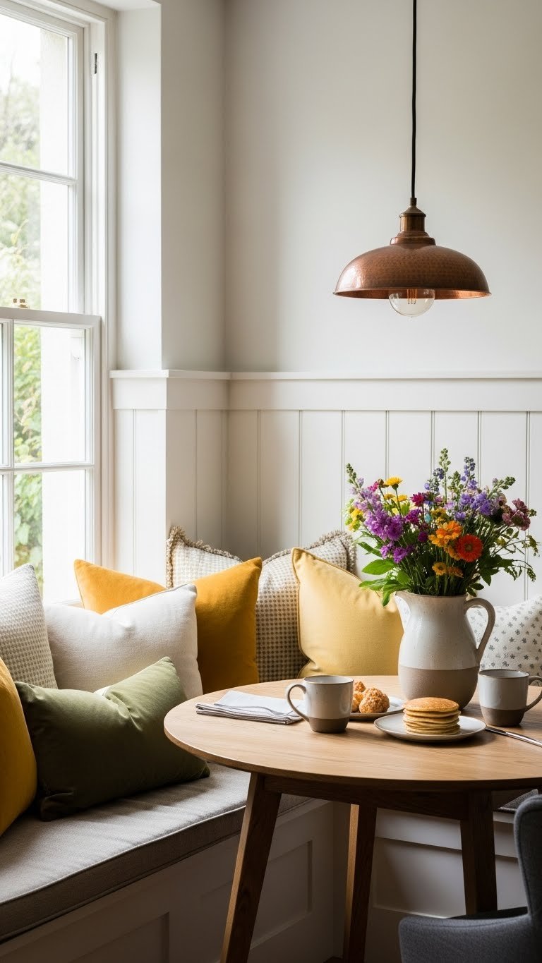 This approach works in apartments and houses alike because you’re anchoring color with neutrality.