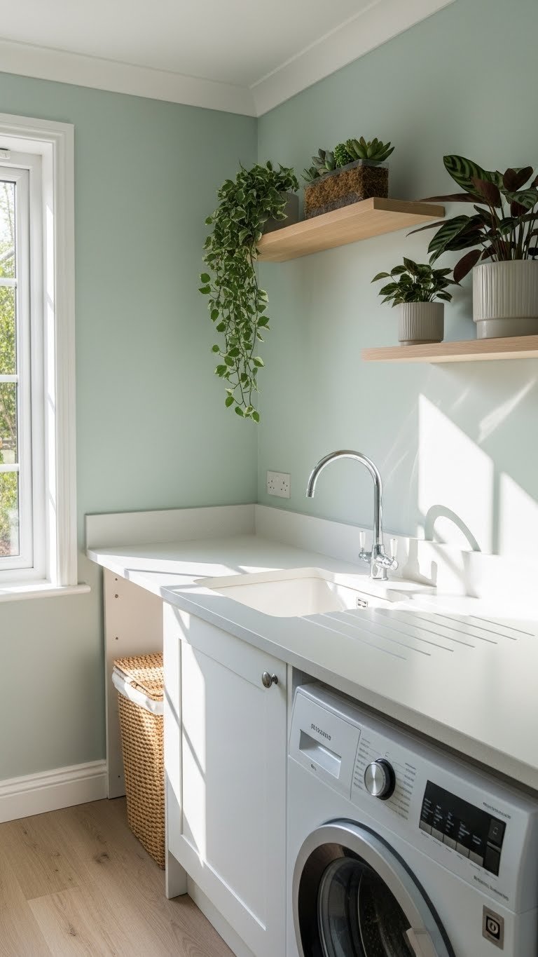 Choose a quality paint like Benjamin Moore’s “Calypso Green” or Sherwin-Williams “Greener Pastures” ($30-50 per gallon). One gallon covers most accent walls, so this is genuinely affordable. Grab painter’s tape, prime the wall first, and roll on two coats over a weekend. The key? Use a matte or eggshell finish—it hides imperfections better than glossy paint.