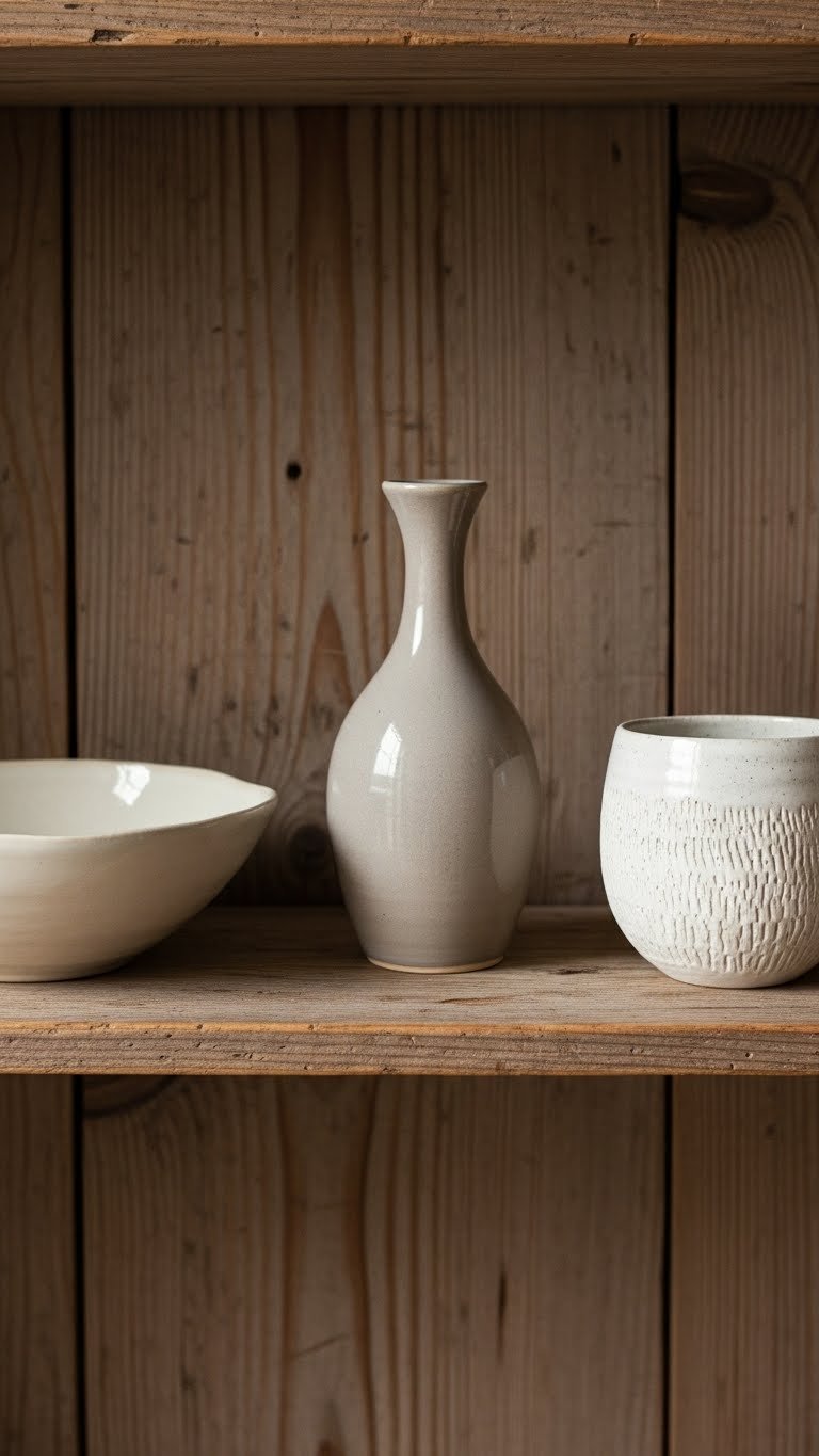 Arranging objects at varying heights creates visual movement and prevents the flat, predictable look of a shelf where everything sits at the same level.