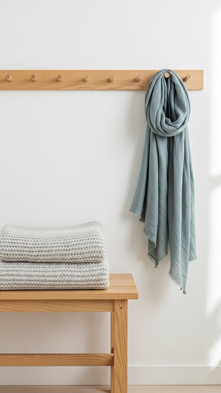 Find wooden decorative ladders at HomeGoods, Wayfair, or IKEA ($40-$100). Lean it casually against your bookshelf (it doesn’t need to be installed). Drape throw blankets over the rungs, hang reading glasses on a rung, or lean your most beautiful coffee table books there. This gives you extra storage without installation and adds a casual, approachable feel to your shelf setup.