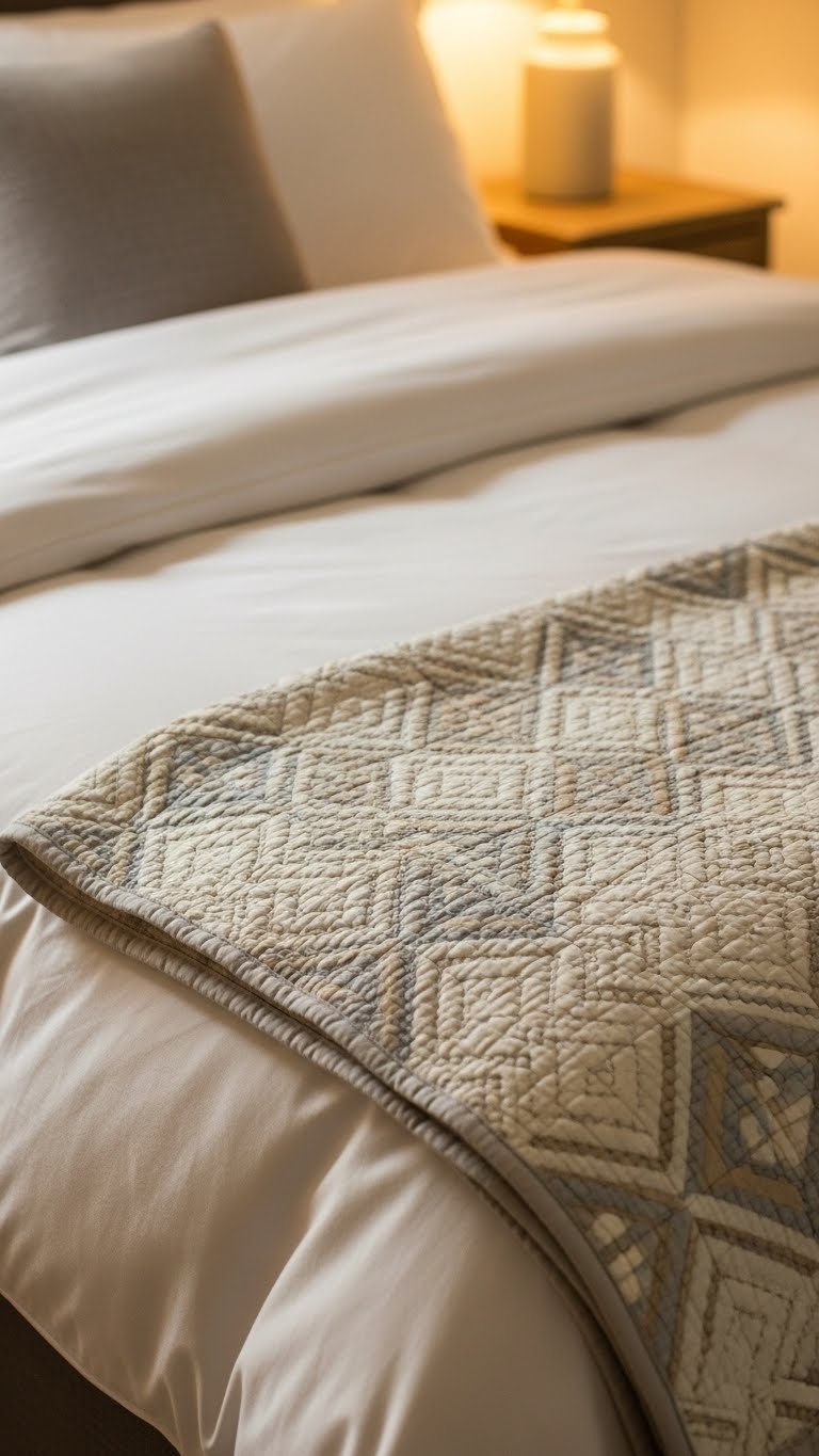 Drape a lightweight quilted throw ($60–$150) across the foot of your bed or fold it at the headboard. Etsy sellers offer handmade quilts starting at $80; thrift stores often have vintage quilts for $15–$40. This requires zero installation—just arrange and adjust. Machine-washable quilts make maintenance simple. The layering creates visual depth and that grandmillennial-meets-Scandinavian vibe trending in 2025.