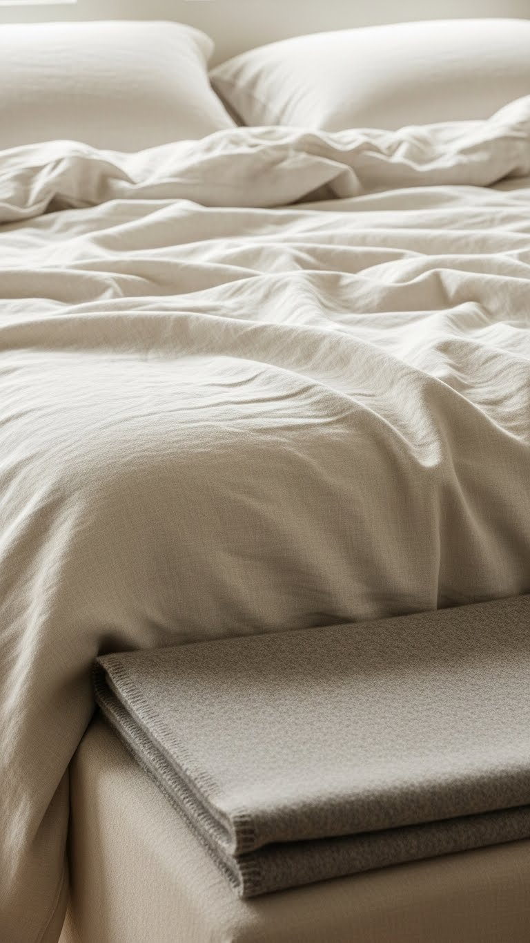 Invest in linen sheets ($80–$200 for a set, or budget options at Target for $40–$60), wool blankets ($100–$300), or organic cotton ($60–$150). Brands like Parachute, Brooklinen, and Woolroom specialize in this. Linen wrinkles—embrace it as aesthetic, not a problem. Wash in cool water and air-dry to extend life. Quality natural bedding lasts 5–10 years and softens over time. Yes, upfront cost is higher, but cost-per-wear is ultimately lower.