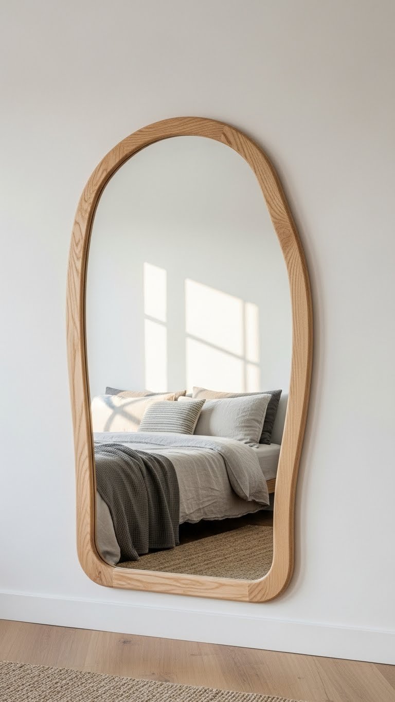 Standard rectangular mirrors feel cold; curved mirrors add organic shape, bounce light, and make rooms feel larger.