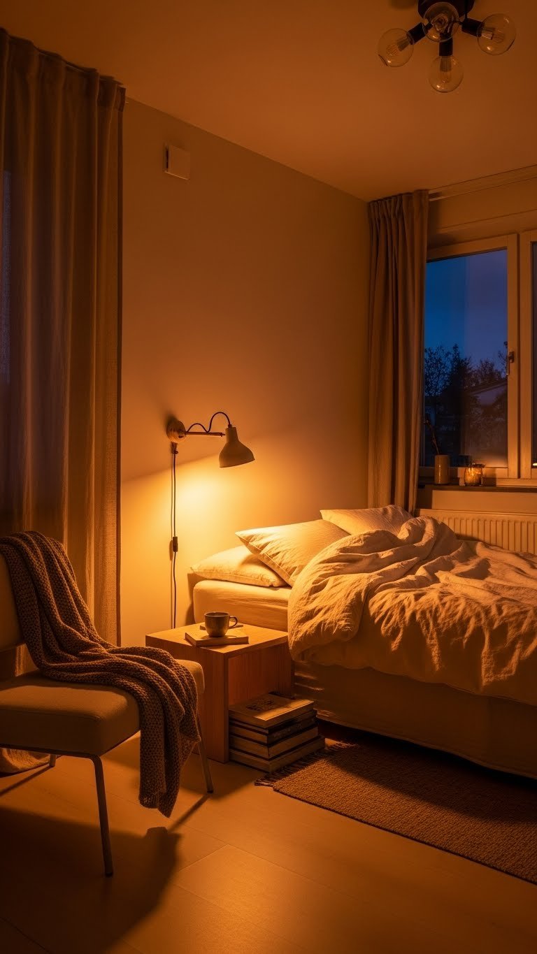 Lighting is the easiest way to shift your entire room’s vibe toward calm and rest.